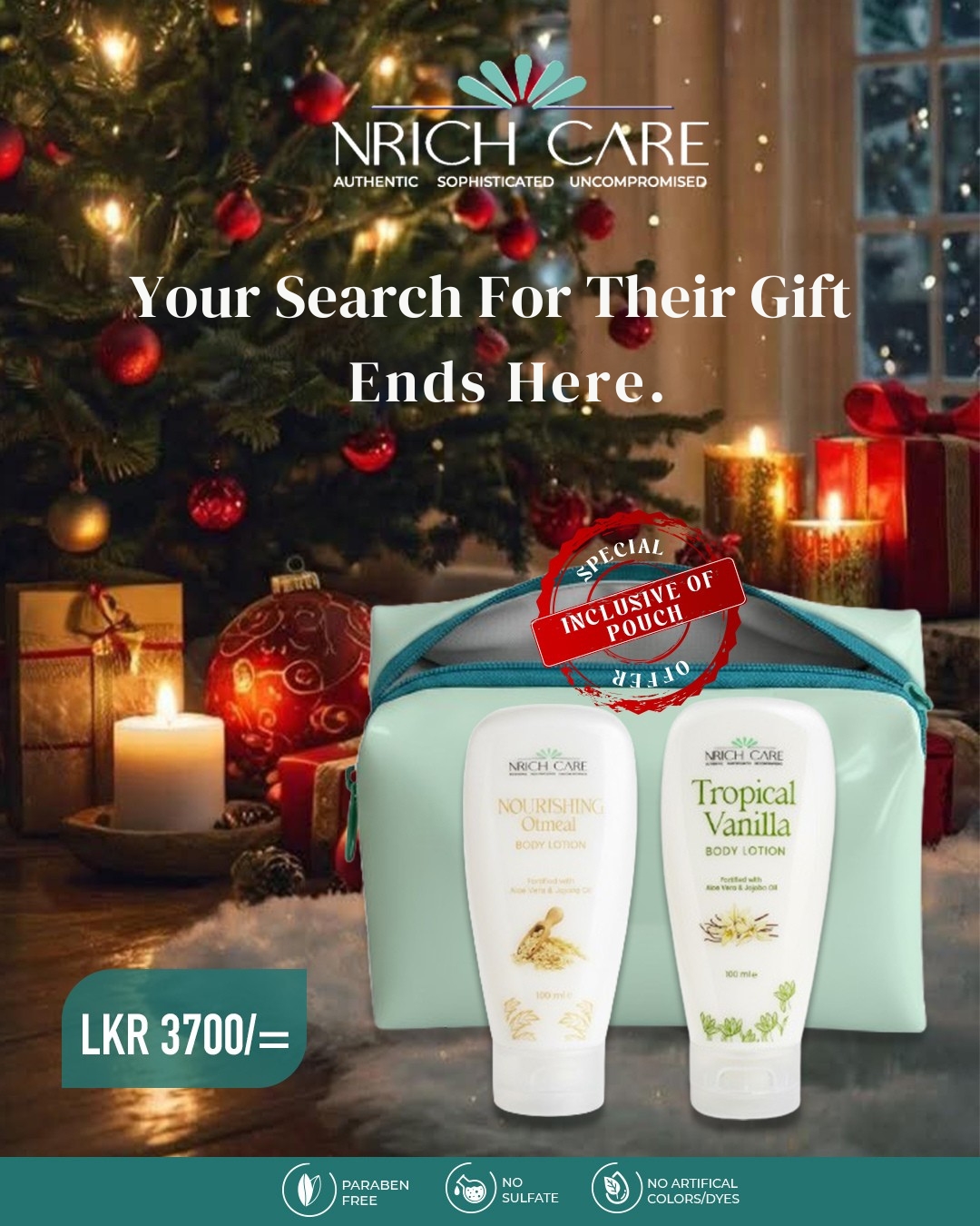 Get TWO 100ml luxury lotions (Oatmeal & Vanilla) + a FREE Pouch!